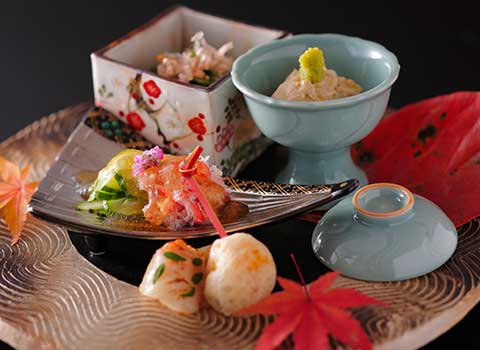 自古以来,御食国「若狭、志摩、淡路」作为丰富食材产地,向皇室与朝廷供奉海鲜等各种食材。京都与这三个地区有着深厚的历史渊源,因此造就了繁华魅力的的和食文化。敬请享用由美食之都-京都全域聚集的各种山珍海味、以及由御食国的精选食材相结合的独具特色的日本料理。